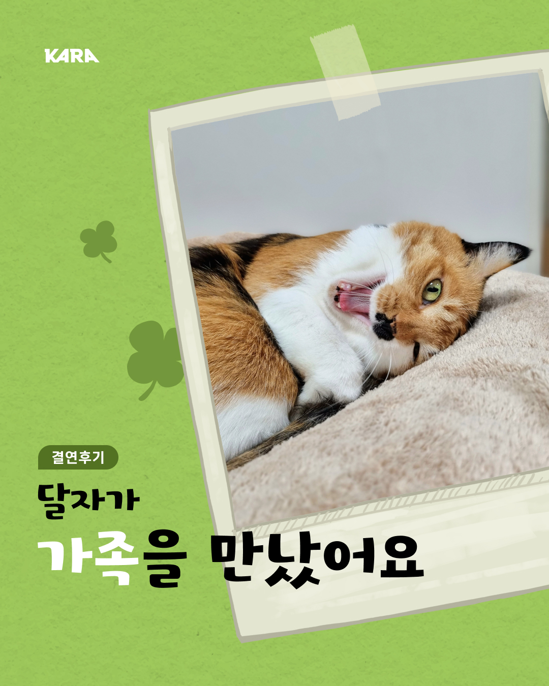 카라의 입양절차는 [입양하기] 메뉴의 '입양절차'에 안내되어 있으니 참고해주세요~
