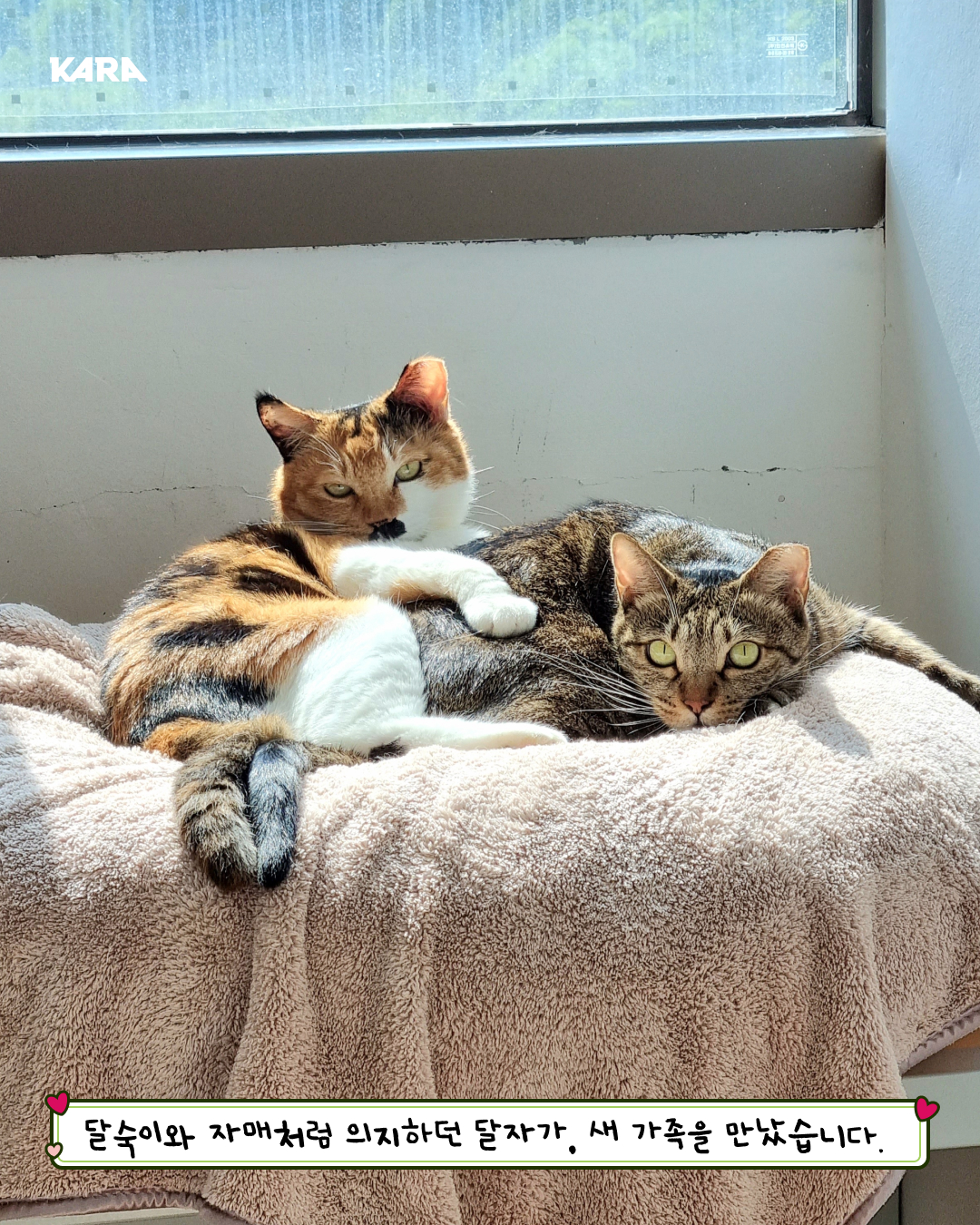 오랜 시간 달자와 달숙이는 서로를 의지해서 지내왔습니다. 떼어놓을 수 없는 두 고양이와 오래오래 행복하게 지내실 수 있을 가족을 찾습니다. 사람품을 항상 그리워하는 이들에게 손을 내밀어 주세요.