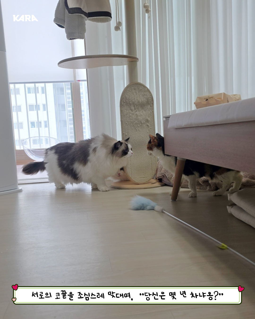 재미있게 노는 모습에 #카라_달숙 이도 놀고 싶은가 봐요. 주변에서 장난감이 움직이는 방향대로 같이 움직여요.😆