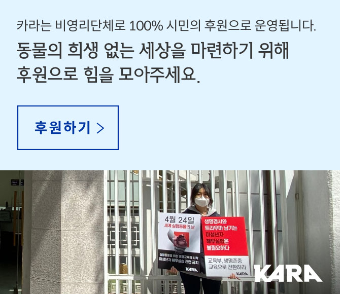 정부에서는 동물학대의 산물인 모피를 사도록 비윤리적인 소비를 부추길 게 아니라 시민들이 윤리적인 소비를 할 수 있도록 할 의무가 있습니다. 기획재정부는 카라에서 전달한 의견서를 검토한 후 답변을 주기로 했습니다.